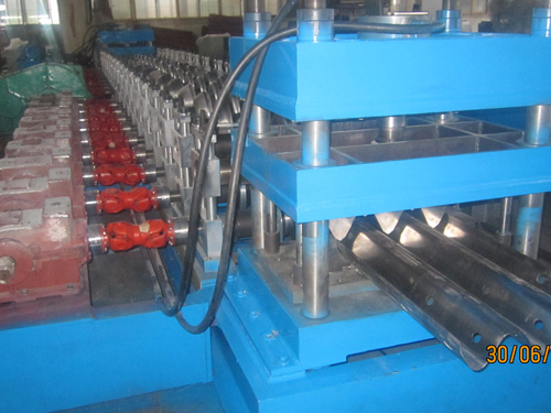 This machine adopts automatic PLC control and touch screen operation. And it has high speed forming process and makes little noise. The equipment adopts welded frame of high intensity. After fine finish, forming rollers get heat treatment before chromeplate. So this equipment has features of stable performance and long service life.